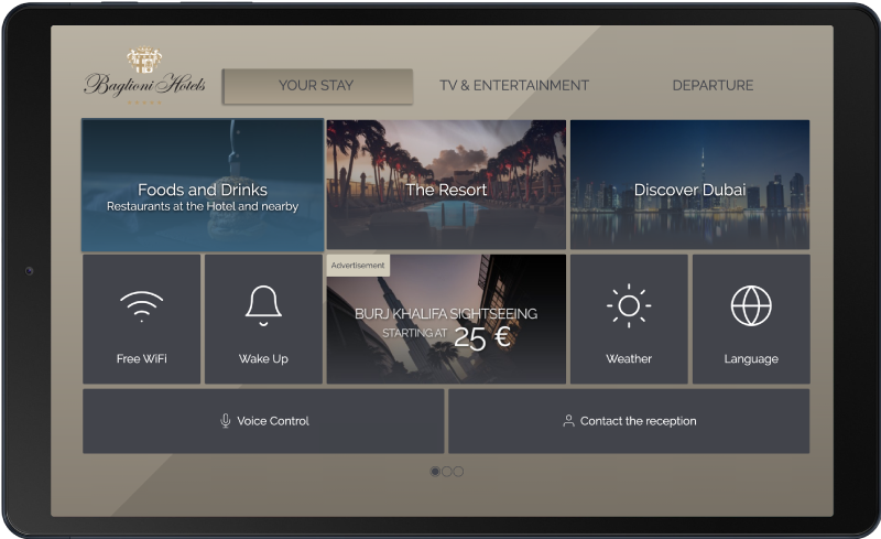 Use the TV system to promote offerings such as spa, gym, room service etc. You can also display ads from other partner activities.